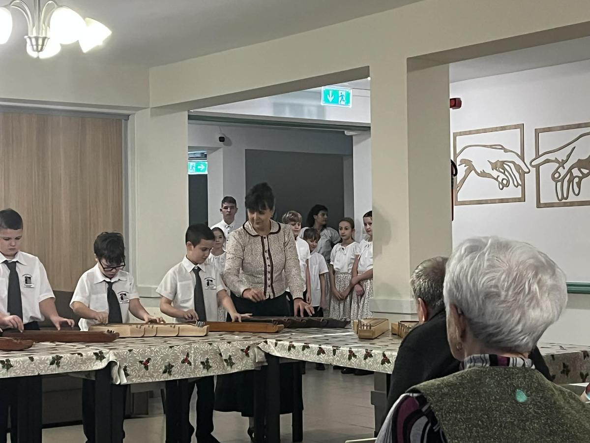 A sóstói Kálvineum Református Idősek Otthonában adtak adventi koncertet citerás tanulóink. 14 diák vállalta a muzsikálást az időseknek, voltak, akik először léptek itt fel. Sokat jelentett a szereplőknek, hogy a közönség nagy figyelemmel, kedvességgel fogadta az ünnepi népénekeket, népdalokat, és a záró műsorszámban szívesen énekeltek együtt a citerázókkal.